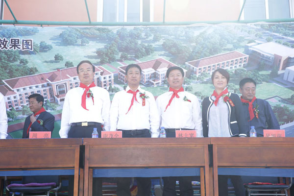 在奠基仪式上,华彩置业集团有限公司董事长谢茂全先生发表了热情洋溢的讲话,他表示在发展事业的同时不要忘记回报社会,秉承“践行公益”的爱心理念,希望更多的爱心人士关注教育,为学生们营造健康成长的环境。仪式最后,董事长谢茂全与各界领导一起为华彩学校新校区奠基培土并合影留念。