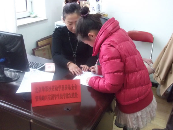 北京华彩扶贫助学慈善基金会在前期大量调研、走访、审核、筛选的基础上,最终确定了来自辽宁省鞍山市岫岩满族自治县7所小学的20名贫困小学生。这些同学由于家境贫寒,面临失学,基金会领导经研究决定,在信息真实的基础上,对这20名贫困同学进行捐助,帮助他们完成学业。