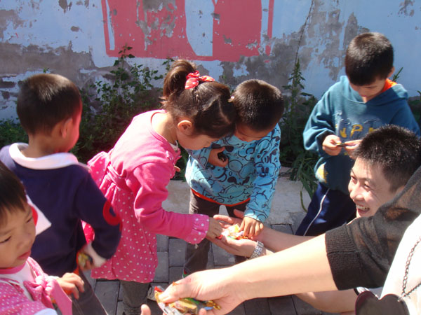 2013年9月15日,北京华彩扶贫助学慈善基金会工作人员来到位于北京市顺义区赵全营镇板桥村的“北京太阳村”,与在这里生活的小朋友共度中秋佳节。“北京太阳村”是一所特殊的学校,十几年来太阳村无偿代养代教服刑人员未成年子女, 对服刑人员无人抚养的未成年子女进行特殊教育,心理辅导,权益保护以及职业培训服务。使他们在一个相对安定温馨的大家庭里像其他孩子一样受到保护,得到教育,健康快乐的成长。
